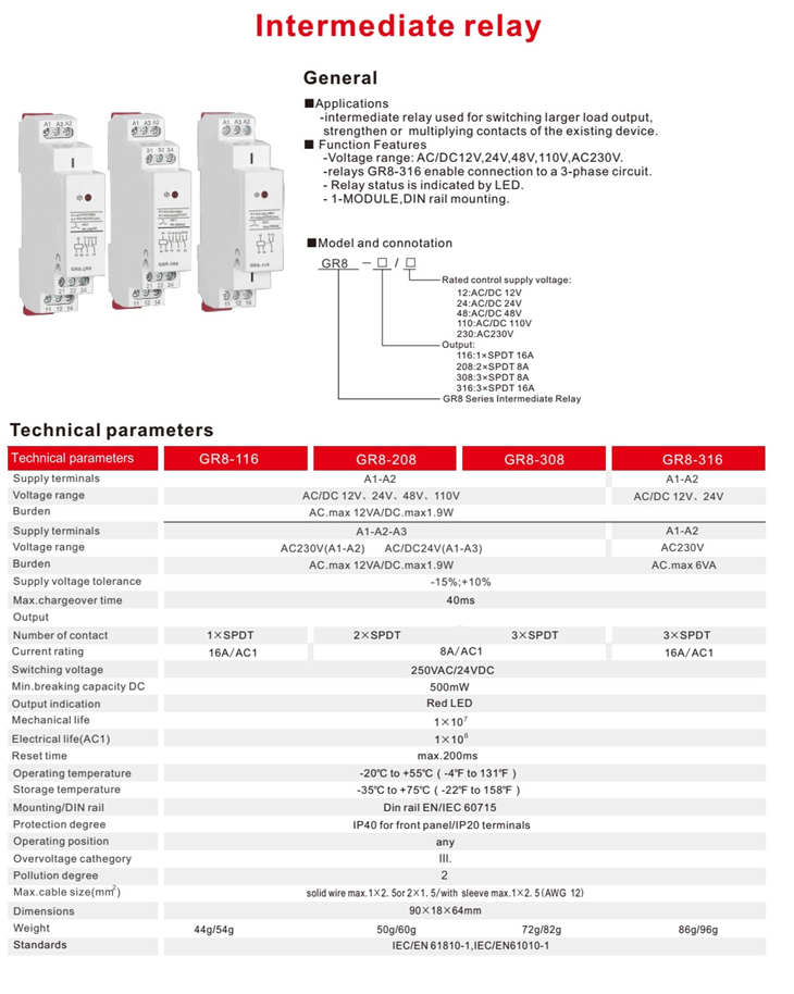 Product Name | Intermediate Relay Auxiliary Relay |