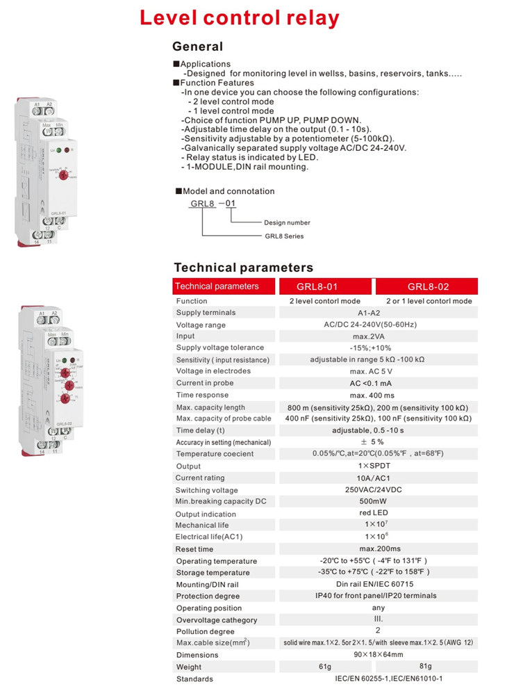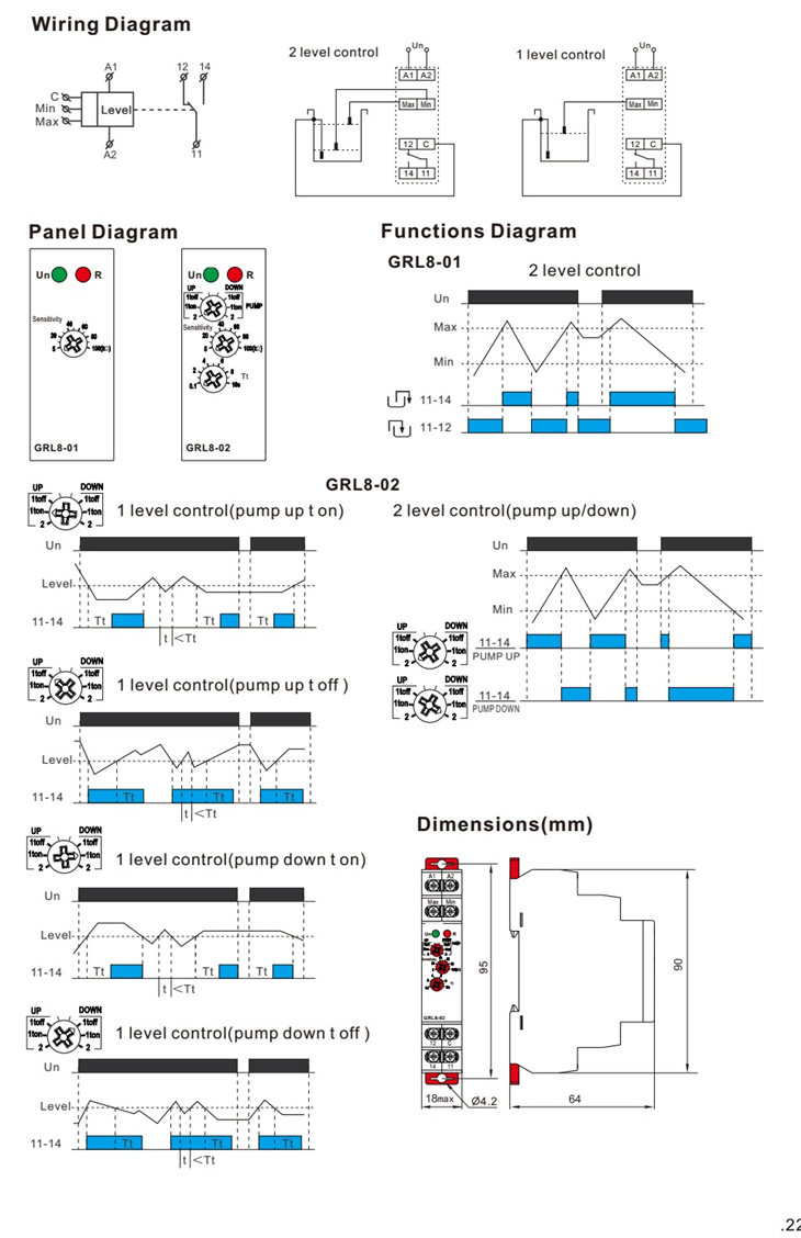GRL8-02 | 2 or 1 Level Control Mode (Pump up/down) |