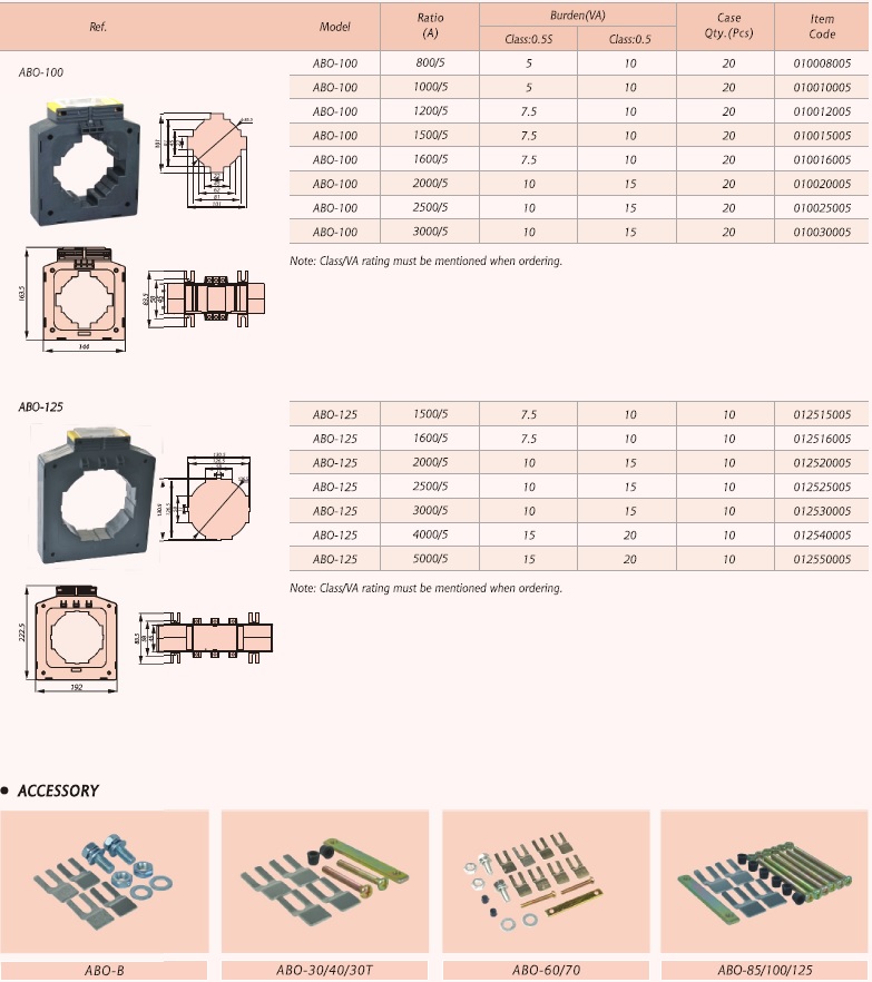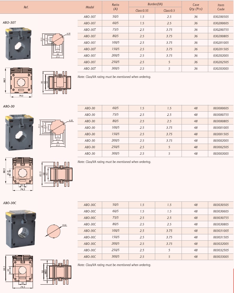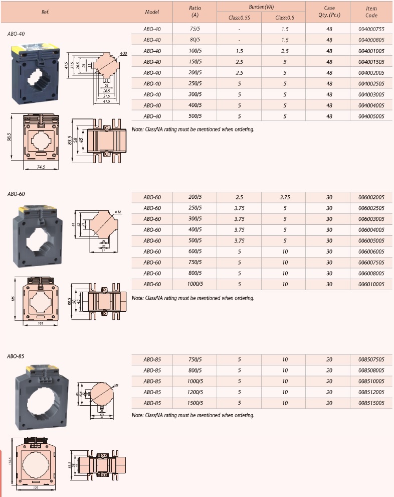 ABO Series (8 frames) perfect designed plastic case current transformer, advanced snap on body, high accuracy (up to Class 0.2S),