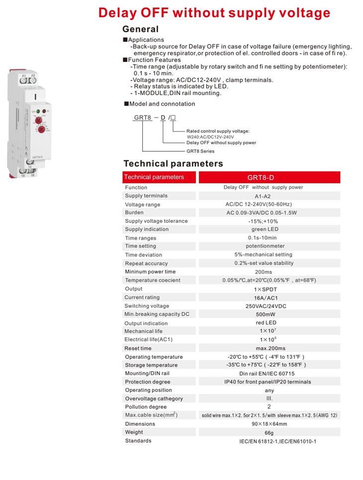 -Back-up source for Delay OFF in case of voltage failure (emergency lighting,