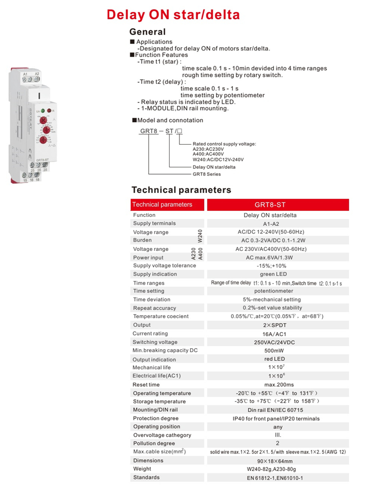 -Designated for delay ON of motors star delta.